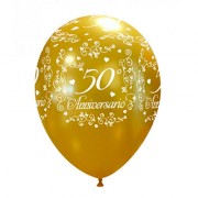 Palloncini12 pollici Oro stampa 50° Anniversario. Busta da 50 Pz.
