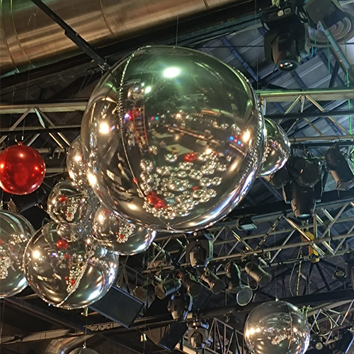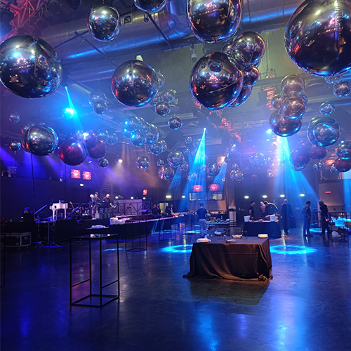 Allestimento con Mirror Balls specchio presso Alcatraz Milano