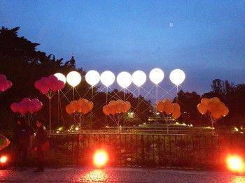 MARATONA NIKE PRESSO CASTELLO SFORZESCO DI MILANO, MAGGIO 2013. GONFIAGGIO A GAS ELIO DI 8 PALLONI IN LATTICE DEL DIAMETRO DI 1,50 MT CON KIT DI ILLUMINAZIONE MODELLO ECO PRO DA 150W.