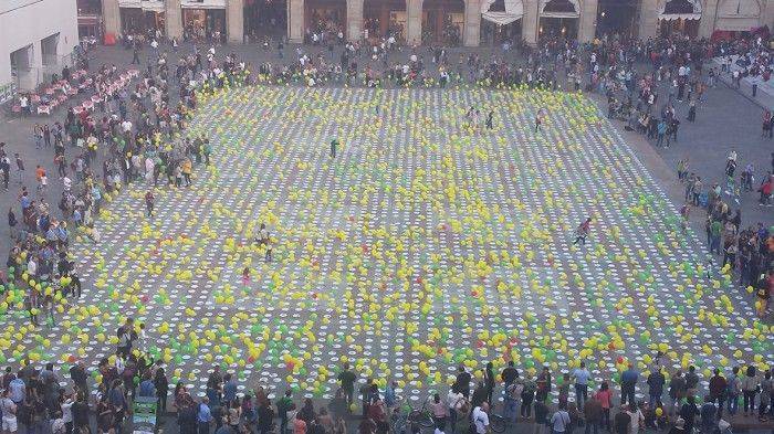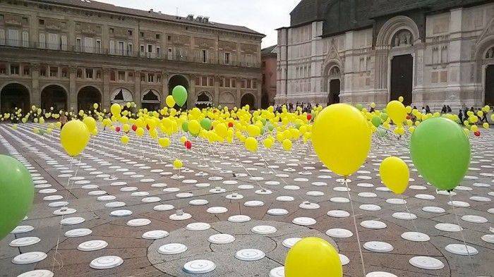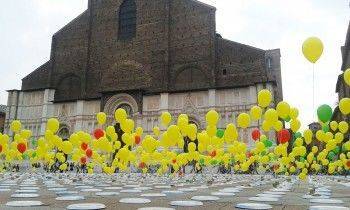 GONFIAGGIO A GAS ELIO DI 5.200 PALLONCINI IN P.ZZA MAGGIORE A BOLOGNA