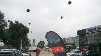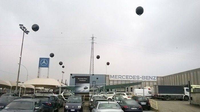 PALLONI GIGANTI 140 CM LOGATI "PROMO MERCEDES BENZ" GONFIATI A GAS ELIO ED INSTALLATI PRESSO LE VARIE CONCESSIONARIE IN TUTTA ITALIA.