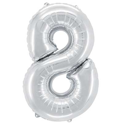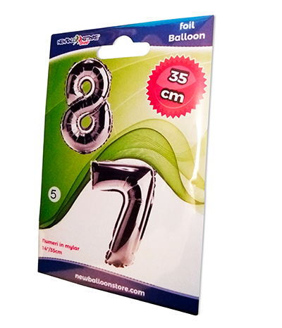 Numeri in mylar altezza 35 cm con valvola argento disponibili da 0 a 9 acquistabili anche singolarmente. Adatti al gonfiaggio con aria.