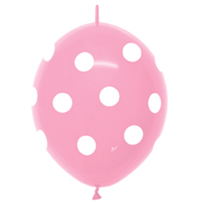 Palloncini Link 12" azzurri con stampa sul globo pois bianchi. Busta da 50 Pz. Crea facilmente splendidi archi o ghirlande adatte per ogni occasione. Questi palloncini si annodano uno in coda all'altro e sono adatti sia al gonfiaggio con gas elio che con aria.