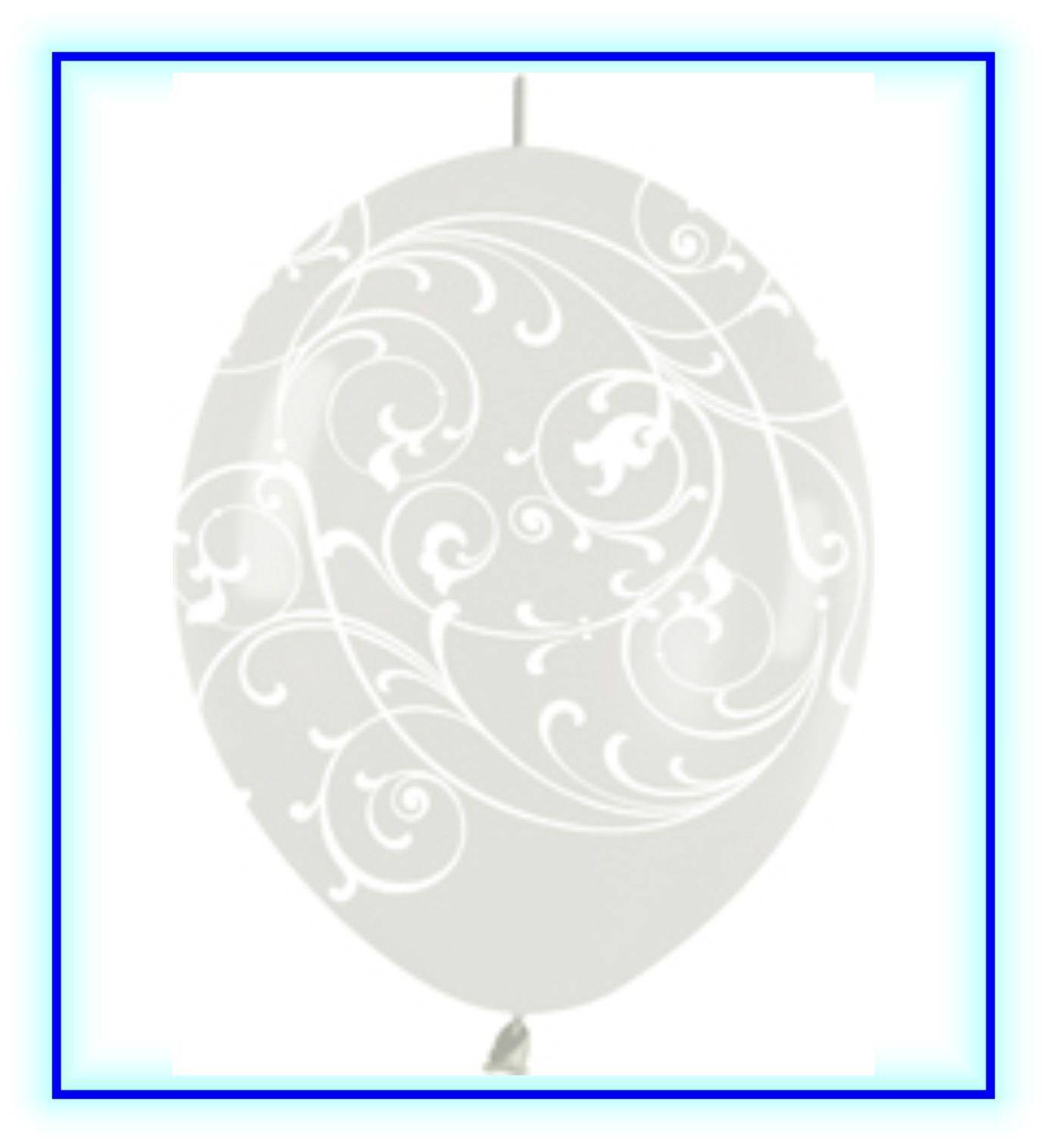 Palloncini Link 12 pollici trasparenti con stampa filigrana busta 50 Pz. Crea facilmente splendidi archi o ghirlande adatte per ogni occasione.