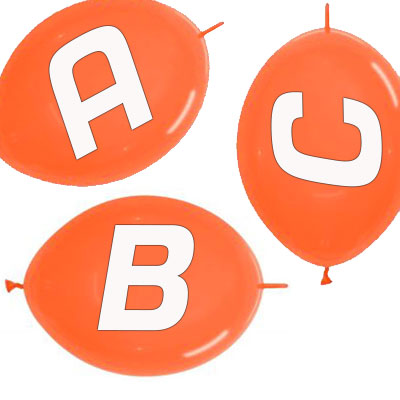 Palloncini Link 12" arancioni con stampa di tutte le lettere dell'alfabeto per comporre qualsiasi scritta, vendibili anche singolarmente. Facili da assemblare e di grande effetto. Le lettere sono vendute singolarmente.
