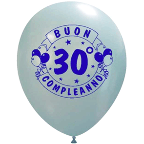 Palloncini 12 pollici in colori assortiti stampa 30° Compleanno. Busta da 50 Pz.