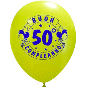 Palloncini 12 pollici in colori assortiti stampa 50° Compleanno. Busta da 50 Pz.