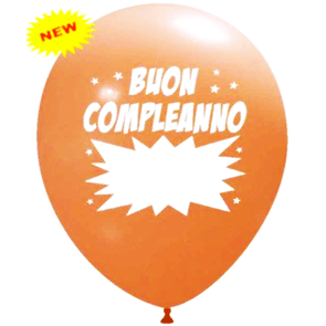 Palloncini Buon Compleanno in colori assortiti in busta da 50 Pz. personalizzabili tramite penna o pennarello nell'apposita finestra.