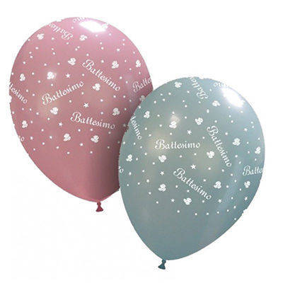 Palloncini 12 pollici con stampa Battesimo Rosa e Azzurri stampa sul globo. Busta da 50 Pz.