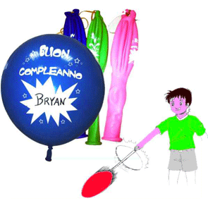 Pallone Punchball in colori assortiti con stampa Buon Compleanno personalizzabile busta 12 Pz.