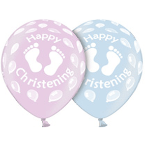Palloncini metallizzati "Happy Christening" disponibile nei colori azzurro e rosa. Busta da 50 pz.