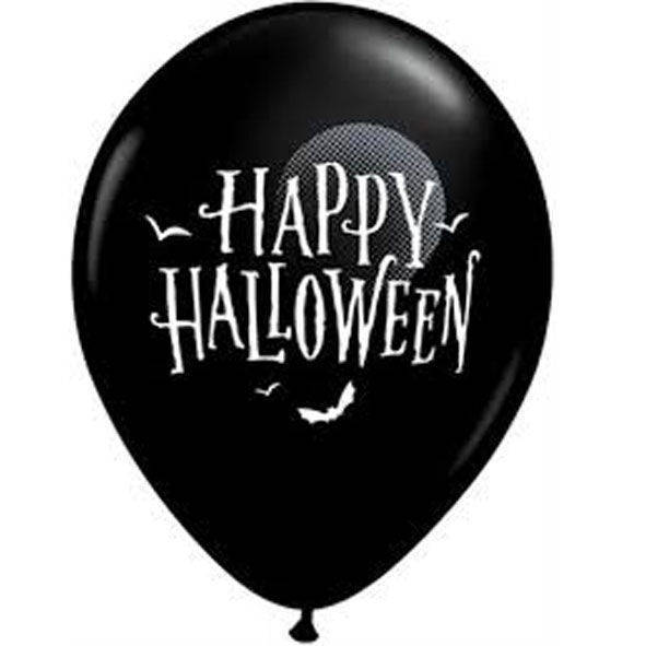 Palloncini 12 pollici neri stampa "Happy Halloween" busta da 50 pz.