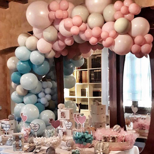 Utilizzo palloni 5" e 12" con prime decorazioni es. coccarde 4/5 petali e superiori