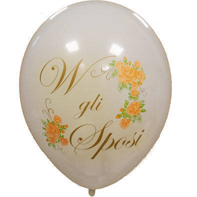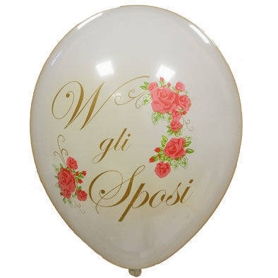 Palloncini 12" bianchi stampa W Gli Sposi a 3 colori disponibili in 3 colorazioni di fiori, Fuxia Rosa e Lilla. Busta da 50 Pz. Scelta del colore tramite menù a tendina.