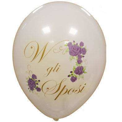 Pallone Cuore gigante 80 cm bianco con stampa "W Gli Sposi" a 3 colori disponibili in 3 colorazioni di fiori, Fuxia, Lilla e Rosa. Scelta colore dei fiori selezionabile tramite il menù a tendina.