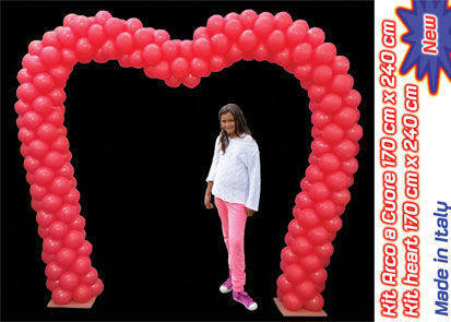 Arco a Cuore di palloncini altezza 2,40 mt X 1,70 mt. Incluso di basi MDF tubi flessibili, raccordi e istruzioni di montaggio. Terminato l'utilizzo la struttura è riutilizzabile infinite volte. Scarica Qui il modulo istruzioni montaggio e scopri come è semplice creare spettacolari scenografie...