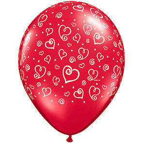 Palloncini 12''; rossi stampa Cuori sul globo busta da 50 Pz.