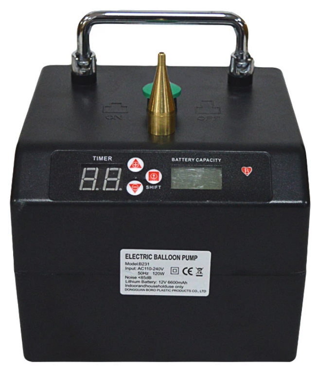 Nuovo gonfiatore elettrico a batteria al litio. Adatto al gonfiagio di palloncini modellabili e pallonicni tondi 5". Il gonfiatore è dotato di sistema elettronico di gonfiaggio, basta impostare la misura desiderata e i palloncini vengono gonfiati tutti alla stessa dimensione. Il gonfiatore si può collegare in serie con un altro gonfiatore.