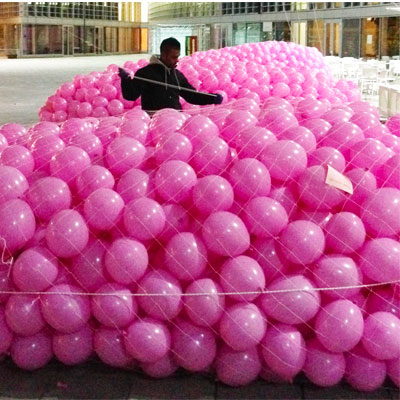 Rete in poliestere da 200 palloncini per cadute, dotata di sistema automatico di apertura.