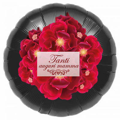 Pallone mylar tondo 18" (45 cm) personalizzato Auguri Mamma Fiori (5 pezzi). Colore pallone a scelta