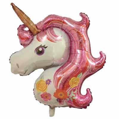 Pallone mylar testa Unicorno misura 115X88 cm ROSA