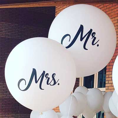 Pallone 80 cm stampa Mrs e Mr, pallone bianco stampa nera 1 lato.