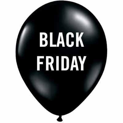 Kit 1000 palloncini in lattice diametro 33 cm neri con stampa in bianco "Black Friday" + 1000 astine e valvole