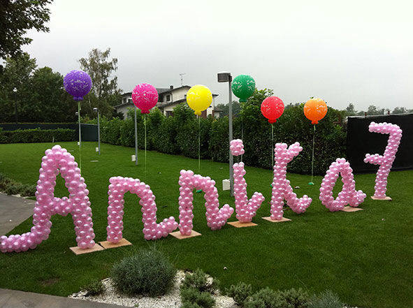 Lettere realizzate con palloncini da 5" e anima interna in alluminio.