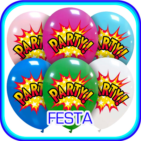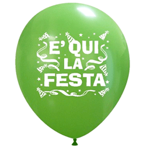 Palloncini 12 pollici in colori assortiti con stampa E' Qui La Festa busta da 50 Pz.