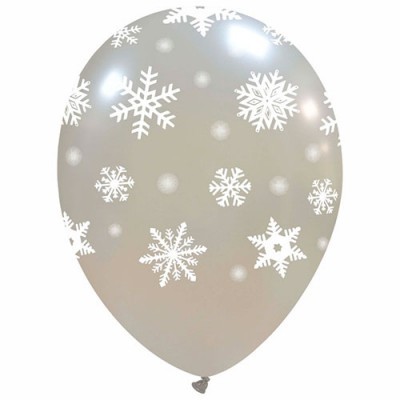 Palloncini metallizzati perla stampa sul globo Fiocco di Neve busta da 50 Pz.