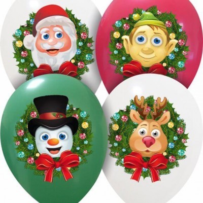Palloncini 12 pollici personaggi Natale stampa Full Color busta da 50 pz.