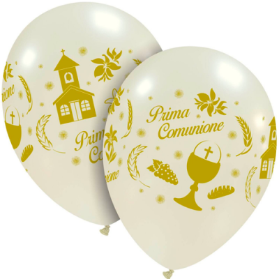 Palloncini 12 pollici bianchi con stampa Comunione sul globo. Busta 50 Pz.