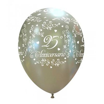 Palloncini12 pollici Argento stampa 25° Anniversario. Busta da 50 Pz.