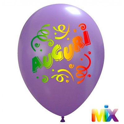 Palloncini 12 pollici in colori assortiti stampa Auguri 4 colori. Busta da 50 Pz.