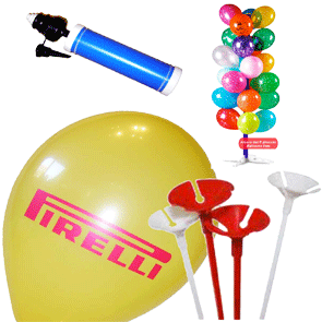 Kit 500 Palloncini 12 pollici stampa Vs. logo 1 colore 2 lati + 500 astine BIO + 1 Pompa Twin