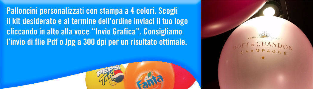 Kit 1000 Palloncini 12 pollici (33 cm) stampa 4 colori 1 lato + 1000 Nastrini Autozip + impianti stampa.