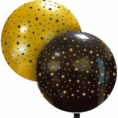 PALLONE 80 CM STAMPA STELLE SUL GLOBO. DISPONIBILE NEI COLORI NERO E ORO