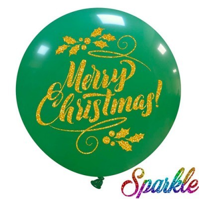 PALLONE 80 CM VERDE MERRY CHRISMAS STAMPA SPARKLE
