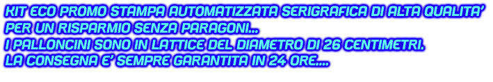 KIT ECO PROMO 3000 PALLONCINI 9 POLLICI (26 CM) STAMPA 1 COLORE 1 LATO + 3.000 ASTINE + GONFIATORE ELETTRICO + ESPOSITORE + IMPIANTI STAMPA