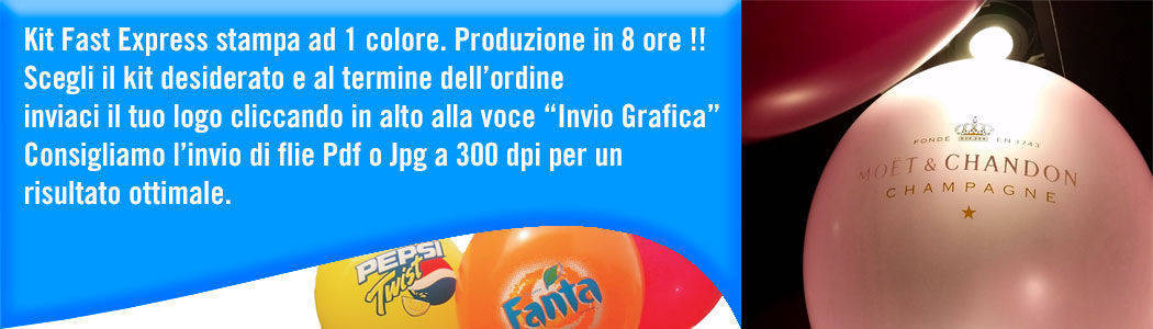 KIT FAST EXPRESS 500 PALLONCINI 12 POLLICI (33 CM) STAMPA 1 COLORE 1 LATO + IMPIANTI STAMPA