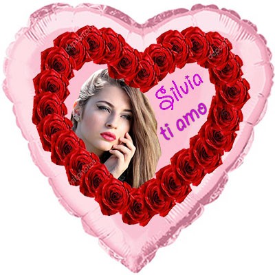 Pallone mylar cuore 18 pollici (46cm) cornice rose con foto e nome (5 Pezzi)