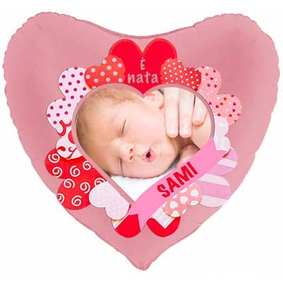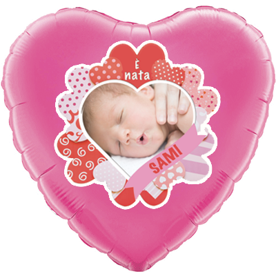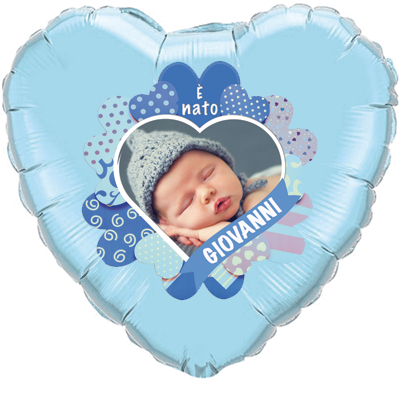 PALLONE MYLAR TONDO 18" (45 CM) E' NATO FOTO + NOME (5 PEZZI)