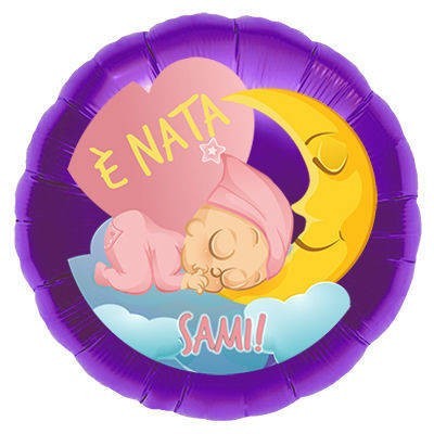 PALLONE MYLAR TONDO 18" (45 CM) E' NATA + NOME (5 PEZZI)