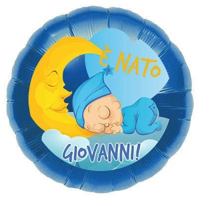 PALLONE MYLAR TONDO 18" (45 CM) E' NATO + NOME (5 PEZZI)