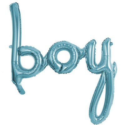 Pallone in mylar scritta in corsivo "BOY" azzurra