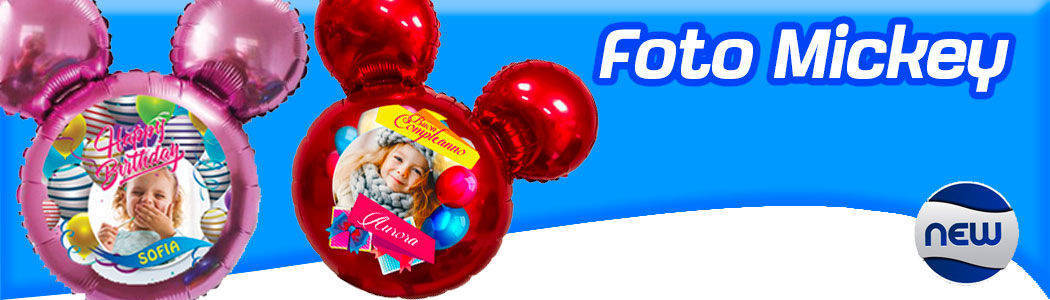 Novità Newballoonsotre... personalizza con la tua foto o testo i magnifici palloni in mylar teste Mickey. Disponibili nei colori Nero Rosso Rosa e Azzurro. I palloni possono essere gonfiati con gas elio.