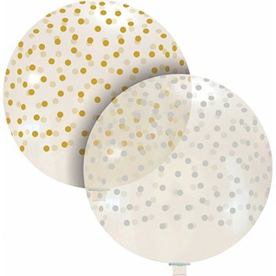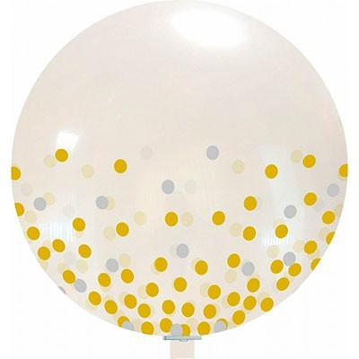 PALLONE 80 CM TRASPARENTE STAMPA KONFETTI ARGENTO/ORO