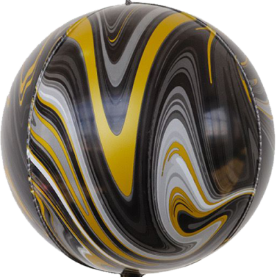 Pallone mylar sfera Marble Nera e Oro 22 pollici (55cm)