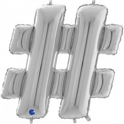Hashtag in mylar argento altezza 100 cm con valvola in confezione singola
