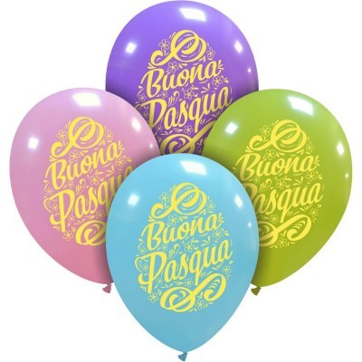 Palloncini 12 pollici stampa Buona Pasqua 4 colori 4 lati. Busta da 50 Pz.